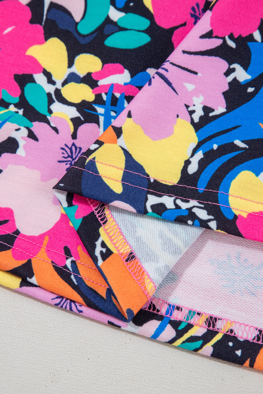 Rose Floral Short Sleeve Contrast Edge Plus Size Henley Top