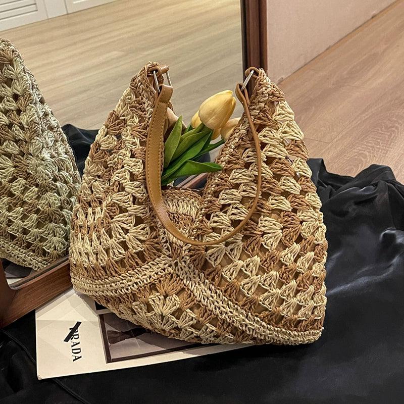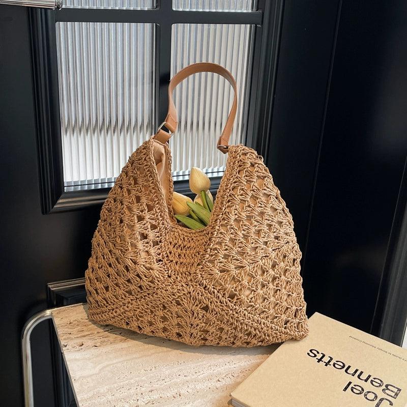 Chic and Spacious: Large Capacity Straw Crossbody Bag – Ideal for Sunny Days