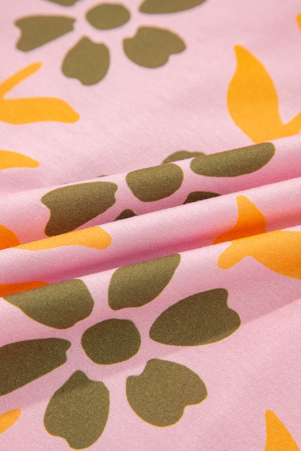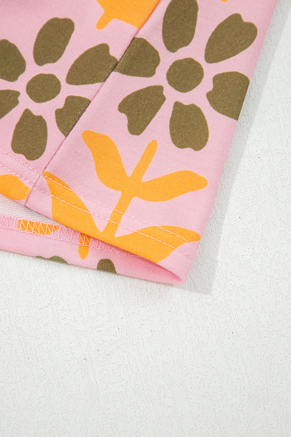 Pink Floral Print Zip Neck Striped Patchwork Long Sleeve Drawstring Dress