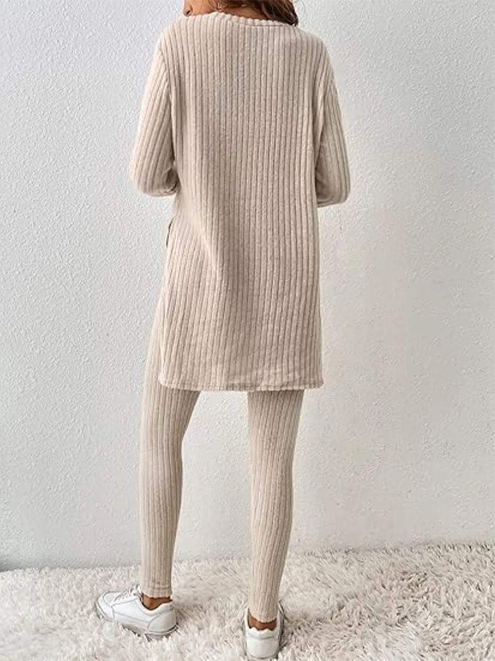 Side Slit Round Neck Long Sleeve Top and Pants Set